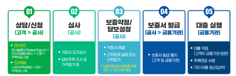 주택 소재지 관할 한국주택금융공사 지사를 방문하거나 인터넷, 모바일을 통해 가입 가능합니다. 공사의 심사를 거쳐 공사가 담보 취득 후 금융기관에서 보증서를 발급받아 대출 약정을 체결하고 월지급금을 수령받게 됩니다.