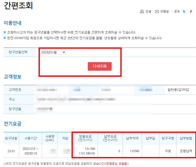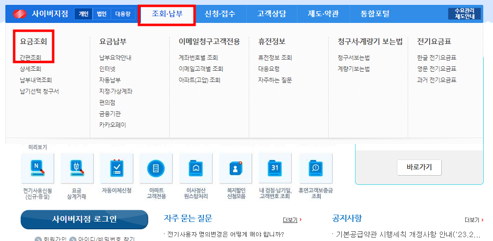 전기요금 인터넷 조회 방법