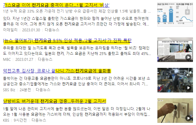 저도 전기세 청구서를 받기 전에 인터넷으로 조회해 봤더니 작년대비 50% 많은 금액을 사용했습니다. 추운 날씨 탓에 난방기를 더 사용한 것도 있지만 확실히 전기요금이 인상되었다는 걸 체감하는 하루였습니다.