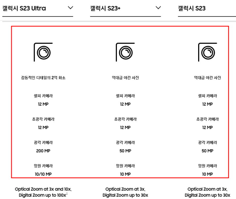 이번 갤럭시 s23 출시 전부터 울트라 모델 메인카메라가 2억 화소였다는 사실이 알려지며 제일 큰 관심을 받았습니다. 전작에 적용되었던 1억 800만 화소보다 무려 2배가 높은 카메라를 선보인 겁니다. 삼성전자는 최신 이미지 센서인 HP2 아이소셀을 적용해 밤에도 낮처럼 밝고 선명한 이미지 촬영이 가능합니다.