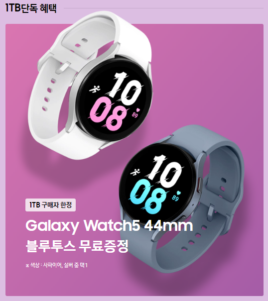 ■ 갤럭시 S23 울트라 1TB 구입시에만 제공되는 갤럭시 워치5 44m 블루투스 무료증정 혜택이 주어집니다. 갤럭시 1TB 모델은 2월 20일 이후 순차 배송될 예정입니다.