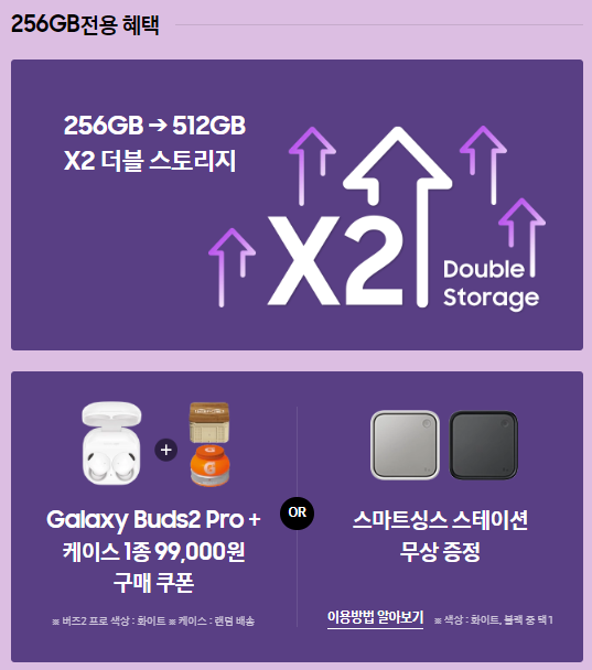 ■갤럭시 버즈 프로+케이스1종을 99,000원 구입할 수 있는 구매 쿠폰 증정 또는 스마트싱스 스테이션 무상증정 (택1)