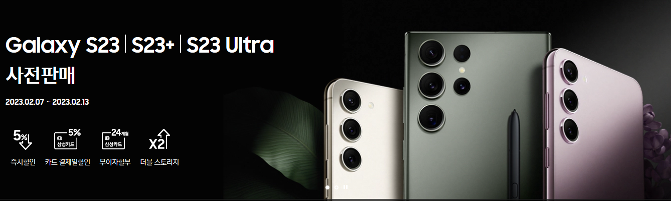 갤럭시 S23 시리즈가 출시되었습니다. 전작대비 모델마다 약15만원 인상된 가격으로 갤럭시 S23 울트라 1TB 의 경우 1,962,400원으로 갤럭시 모델 중 역대 최고의 가격으로 출시되었습니다. 지난 7일부터 사전예약 판매를 통해 풍성한 혜택이 준비되어있습니다.