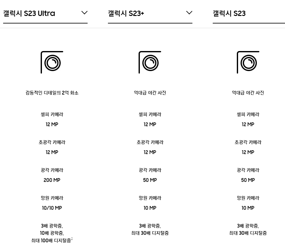 | 갤럭시 s23 | 갤럭시 s23 플러스 | 갤럭시 s23 울트라 | |