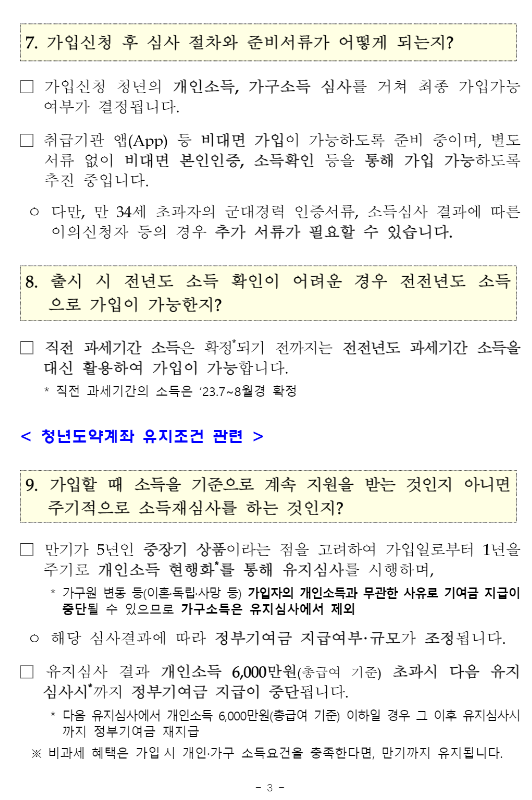■ 청년도약계좌는 23년 6월 부터 가입신청을 받아 비대면 심사를 실시하며, 가입일로부터 1년을 주기로 유지심사를 시행할 예정입니다.