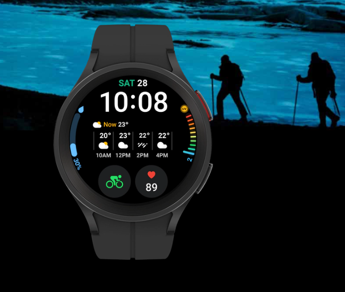 갤럭시워치5는 스크래치에 강한 사파이어 크리스탈, 빨라진 충전 속도와 더 커전 배터리 용량, 다양한 건강 측정을 지원하는 손목 위의 건강 파트너 기능이 탑재되었습니다. 전작 대비 가장 크게 변한것은 GPS(위치정보시스템)를 활용한 기능 추가와 워치5 뒷면에 장착된 적외선 온도 센서가 추가 되었다는 것입니다.