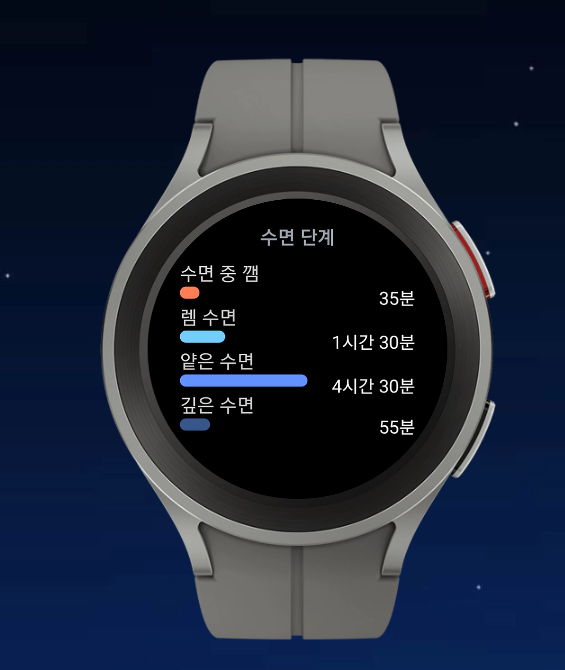 전작보다 한층 업그레이드 되어 정확해진 수면 측정 기능으로 수면 팬턴을 8개의 동물 유형으로 보여줍니다. 취침 시간을 계획하고, 코골이를 감지하고, 수면단계(수면중깸, 얕은 수면, 깊은 수면, 렘수면)를 파악하고 추척할수 있습니다.