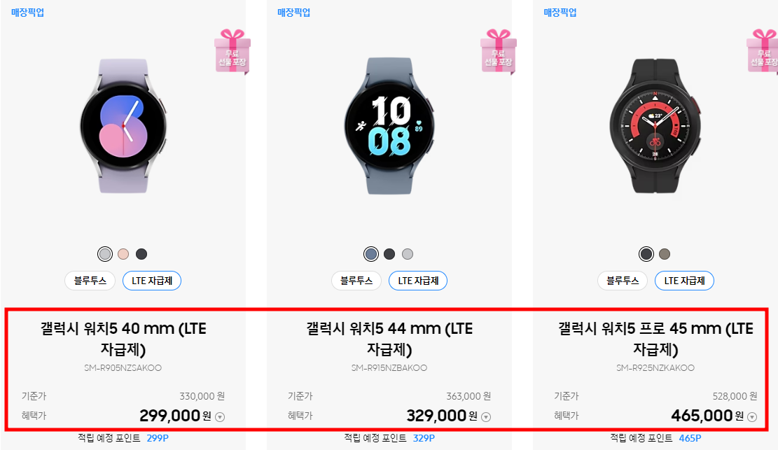 갤럭시워치5 구입을 결정했다면 블루투스/LTE자급제를 선택을 두고 고민하실텐데요. 블루투수와 LTE자급제 차이와 장/단점에 대해 알아보겠습니다.