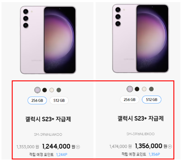 ■갤럭시 s23 - 512GB 1,276,000원