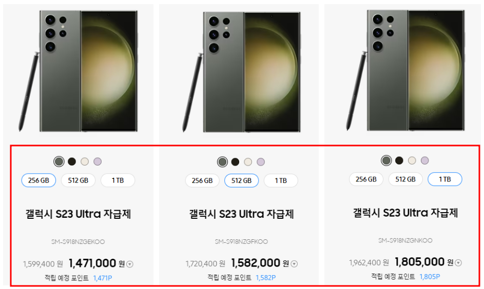■갤럭시 s23 울트라 - 512GB 1,724,000원