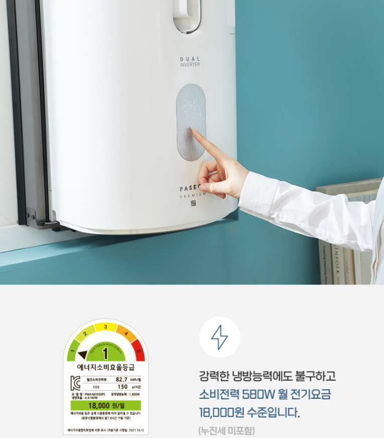 창문형 에어컨의 강자로 불리는 파세코는 37년의 역사를 가진 국가대표브랜드 입니다. 2600W의 강력한 냉방능력에 6.4평을 완벽히 커버하는 파워풀한 힘, 34.3dB로 창문형 에어컨의 최대 단점인 소음을 개선했습니다. 공구없이 맨손으로 셀프 설치가 가능합니다. 파세코 창문형에어컨은 여닫이 창문을 제외한 모든 창문에 설치 가능한 유일한 창문형 에어컨입니다. 파세코는 설치 가능한 미닫이 창문임에도 설치가 안될 경우 13만9천원 상당의 파세코 써큘레이터를 증정합니다.