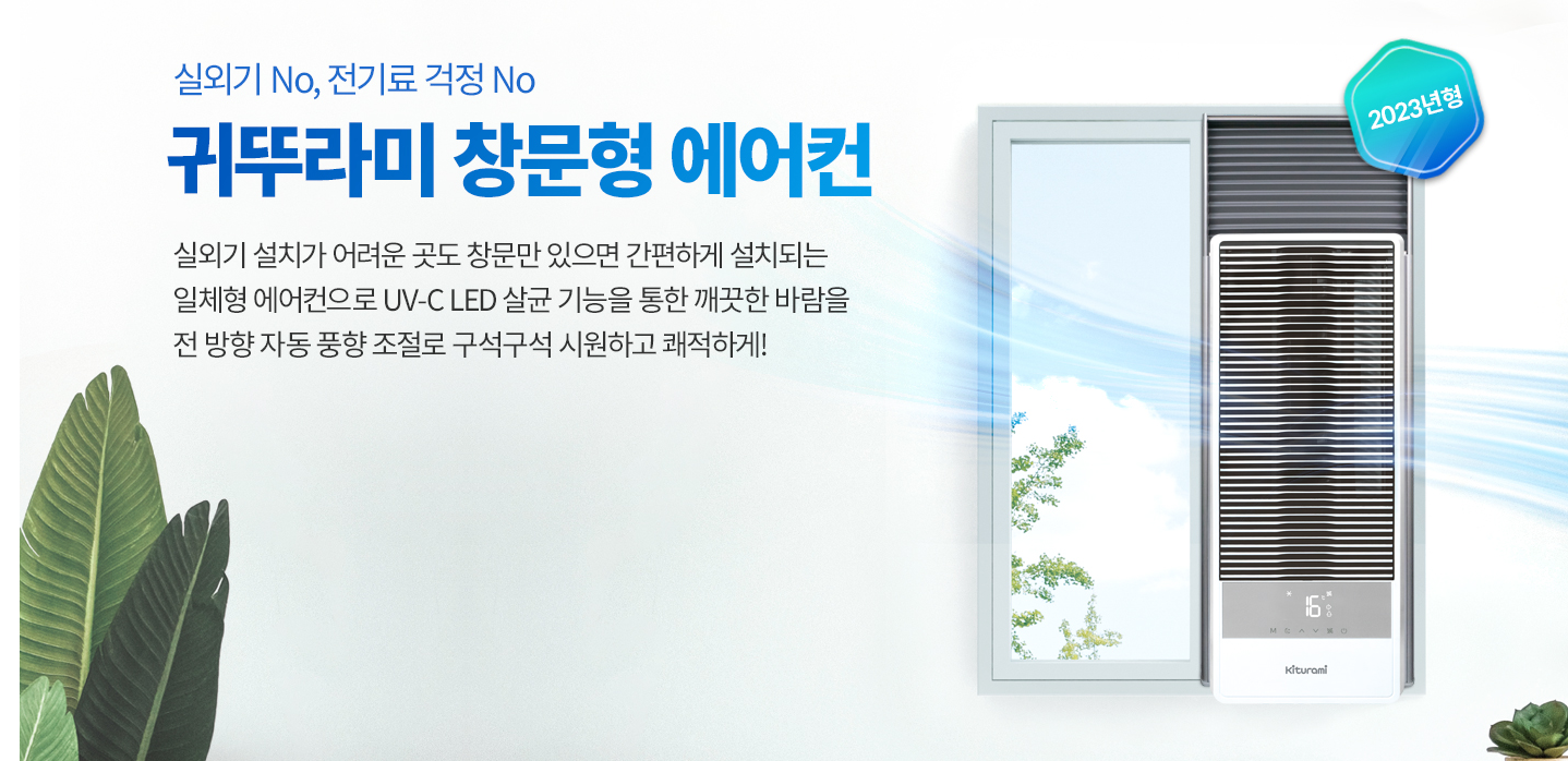 2023년형 귀뚜라미 창문형 에어컨은 듀얼 인버터 압축기를 적용하여 소음은 물론 냉방효율을 높여 전력 소모를 최소화하여 전기료 걱정이 없습니다. 귀뚜라미 창문형 에어컨 신제품의 경우 에너지소비효율 1등급으로 취침모드 작동 시 33dB(데시벨) 수준으로 도서관보다 조용할 정도로 소음문제가 개선되었습니다. UV-C LED 적용으로 세균,바이러스 99%차단 효과가 있어 바이러스 및 세균(황색포도상구균)의 살균이 가능합니다. 사각지대가 없도록 전 방향 자동 풍향조절이 가능하여 시원한 바람을 전달합니다.
