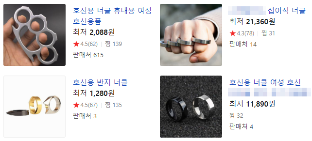 현재 사회적으로 묻지마 사건이 잇따라 발생하면서 호신용품 목적으로 구입하는 너클이 흉기가 될 수 있다는 것을 신림동 등산로 사건으로 보여주었습니다.