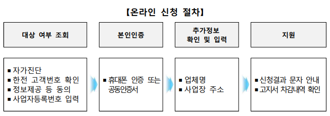 ㆍ 지원금액은 사업자당 최대 20만원 전기요금 지원