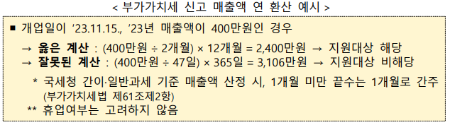 ※ 2023년 연중 개업한 경우 개업 이후 월 평균 매출액을 연환산하여 적용
