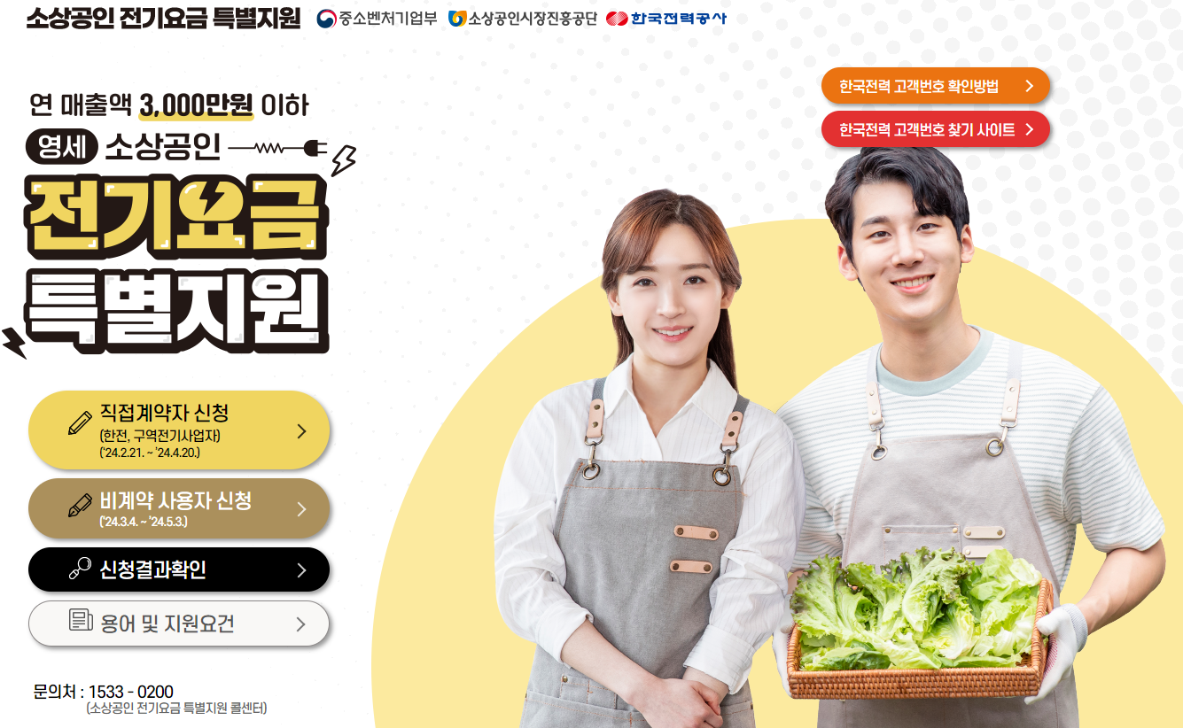 전기요금 인상에 따라 경영난을 겪는 영세 소상공인들을 위한 [소상공인 전기요금 특별지원 사업] 시행 공고 확인하시고 조건에 맞을 경우 기간 내 꼭 신청하시기 바랍니다.
