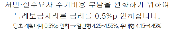 특례보금자리론 금리를 0.5p 인하한다고 26일 주택금융공사는 밝혔습니다.