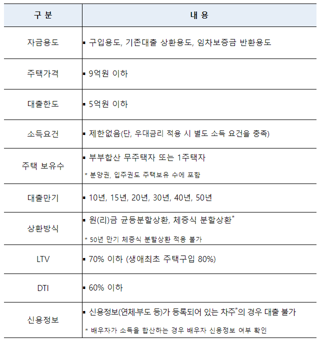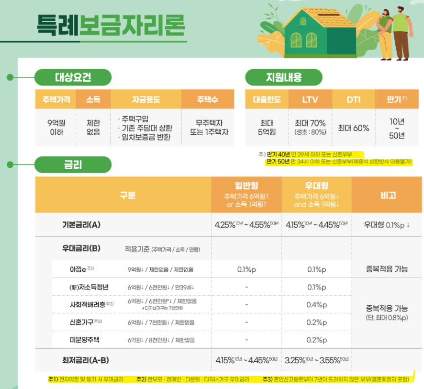 우대금리 항목에 따라 주택가격&소득&연령 조건에 맞을 경우 우대 금리 중복 적용이 가능하며 우대 금리를 모두 적용받을 경우 3.25~3.55% 금리가 적용됩니다.