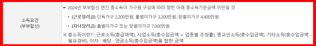 2024년 연소득 기준으로 다음 요건에 해당하는 가구가 신청할 수 있습니다.