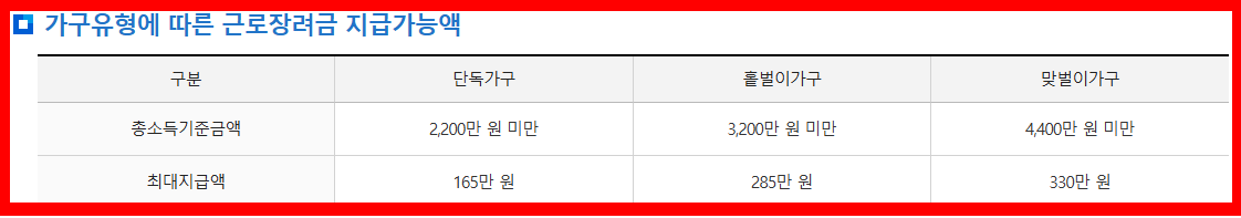 근로장려금은 가구 형태와 소득 수준에 따라 지급 금액이 달라집니다.
