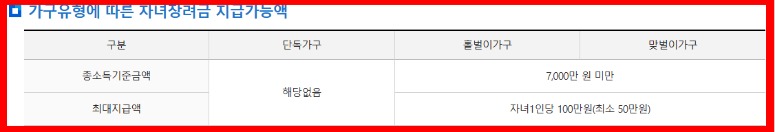 18세 미만 자녀가 있다면 자녀장려금도 함께 받을 수 있습니다.