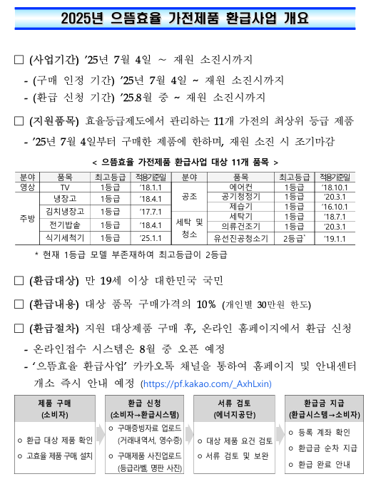 정확한 신청 시작일은 ‘으뜸효율 환급사업 카카오톡 채널’에서 안내됩니다.