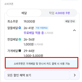 - 쿠팡이츠는 대면결제 기능을 제공하지 않아 소비쿠폰 사용이 불가능합니다.