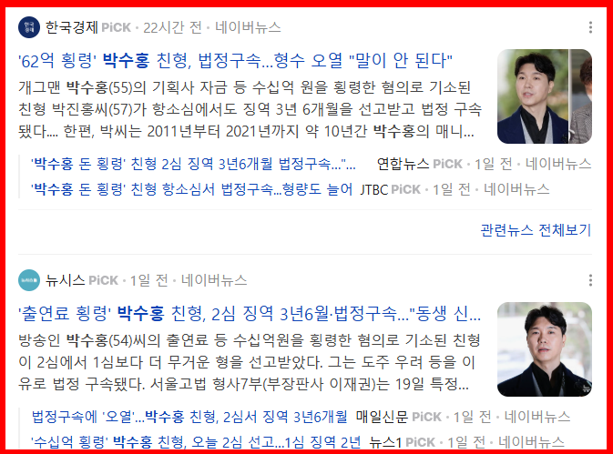 방송인 박수홍 씨의 출연료 등을 수십억 원 횡령한 혐의를 받는 친형 박모 씨가 항소심에서 징역 3년 6개월을 선고받고 법정에서 바로 구속됐다.