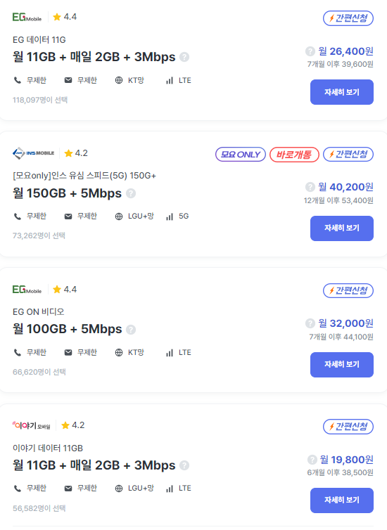 고가의 요금제가 부담스러운 소비자들은 단말기만 따로 구입하는 자급제폰을 구입하여 알뜰폰 요금제를 사용하는 조합이 인기가 높아지고 있습니다. 자급제의 단점은 초반 단말기 가격을 모두 지불해야 한다는 부담감이 있지만 고가의 요금제를 사용하지 않고 무제한 요금제를 3사 통신사 요금제의 3분의 1 가격에 사용할 수 있다는 최고의 장점이 있습니다.