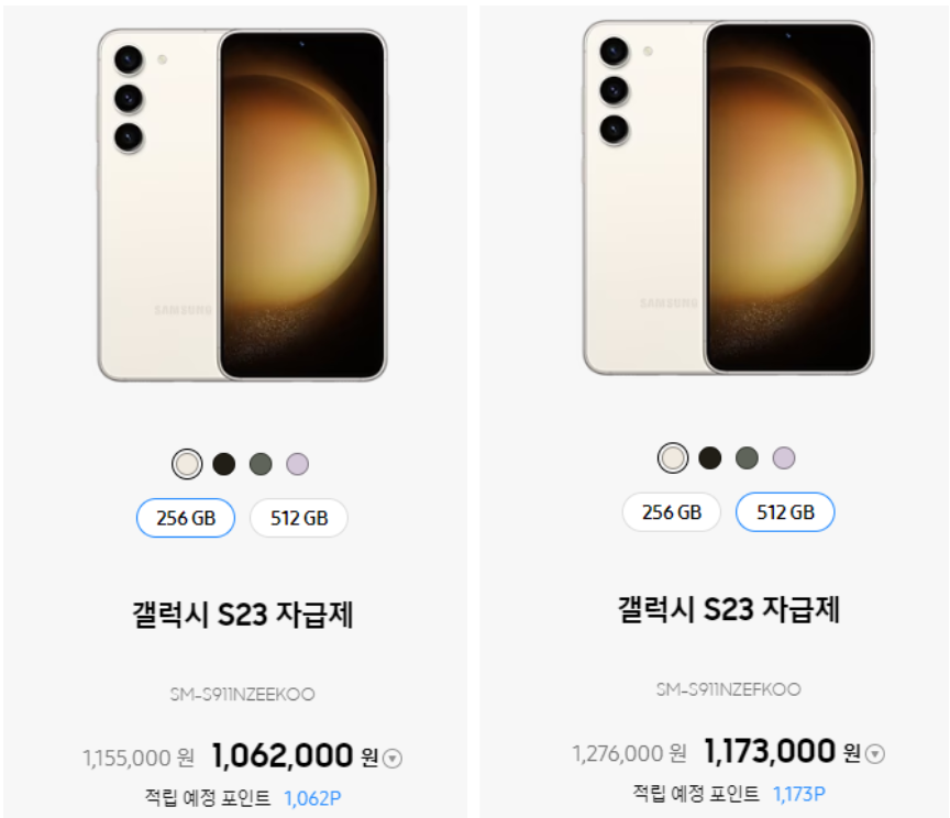 - 갤럭시 s23 - 256GB 1,155,000원