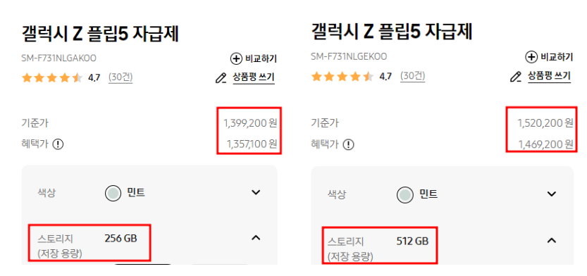 - 갤럭시z플립5 [256GB] 139만 9200원
